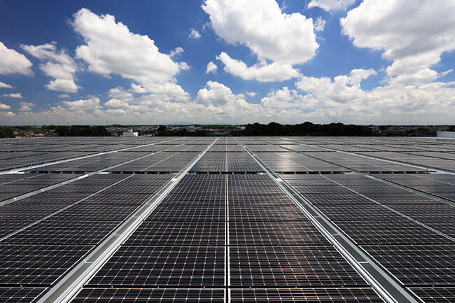 In the development of a logistics facility, we installed solar panels on the building roof. This installation covers a total area of about 23,000 tsubo, or about 1.6 times the size of the Tokyo Dome baseball stadium, and boasts output of a little over 8MWh.