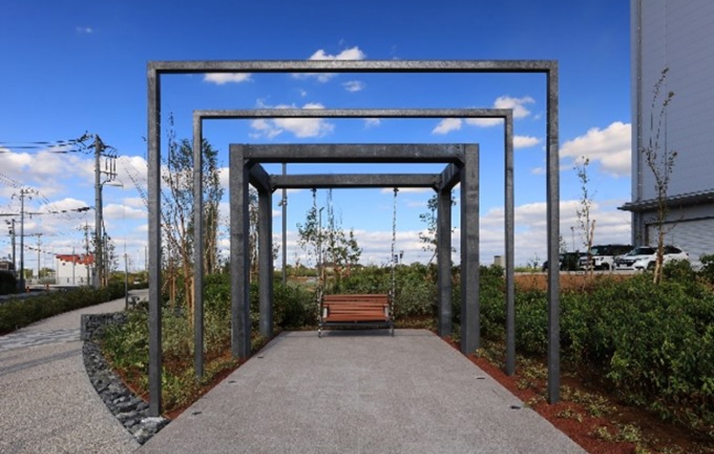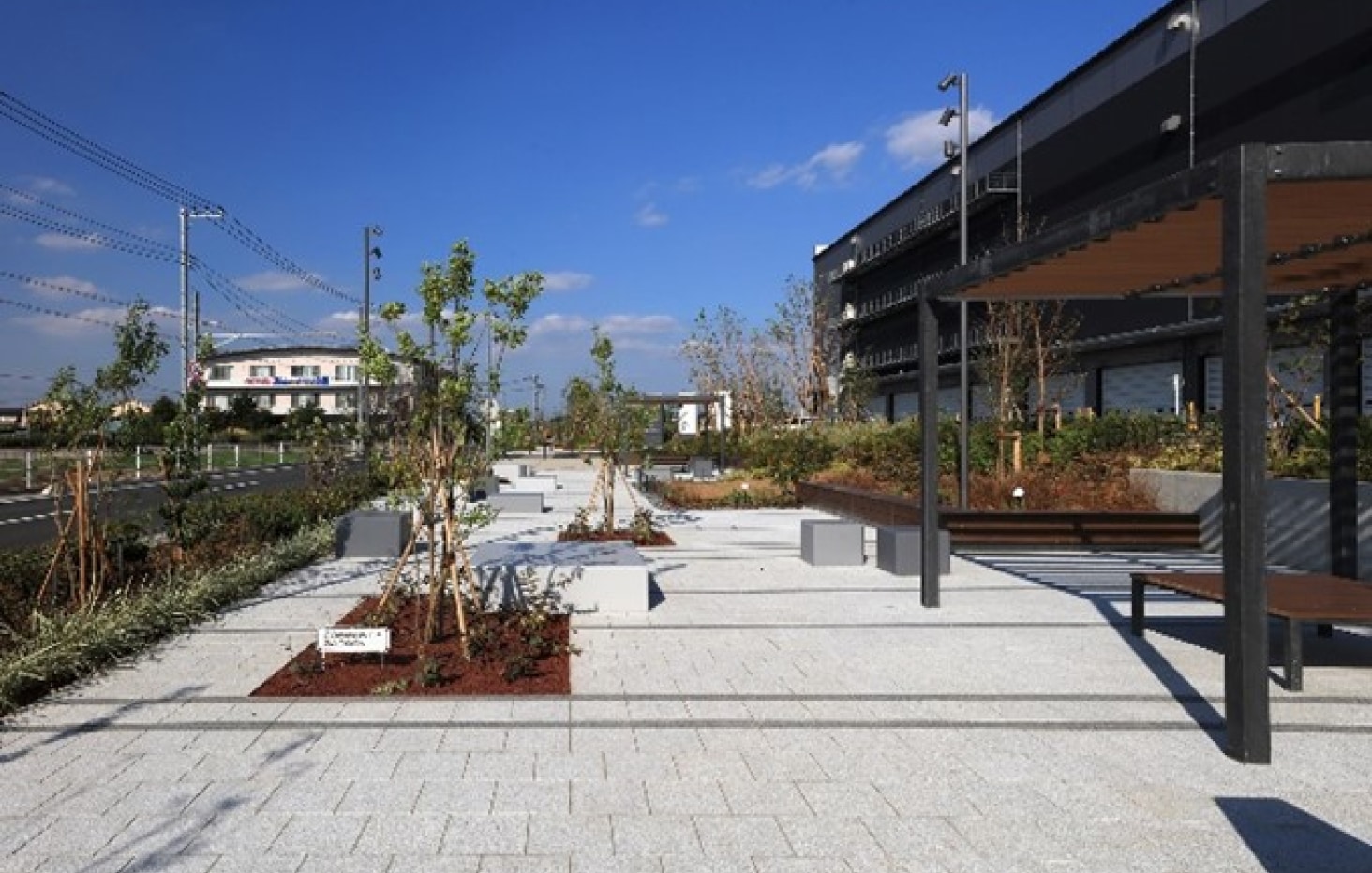 “LogiSquare” includes “Logi Garden,” featuring a promenade, plaza, benches, and other furnishings on the grounds. Open to the public, the garden can be used widely by neighborhood residents, serving as a communication space that helps revitalize the community and also functioning as a school route. With its lush greenery that changes with the seasons, the garden is also a space that contributes to the wellness of local residents.