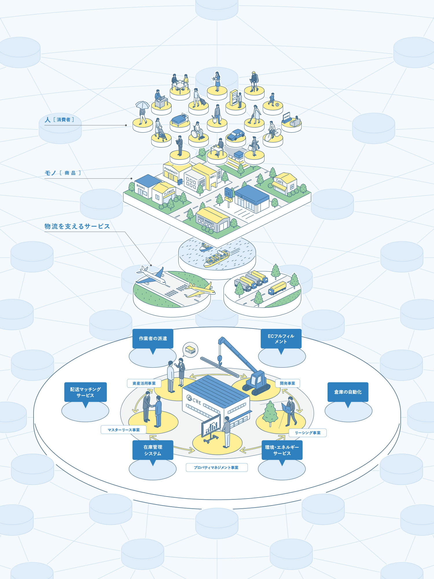 CREグループが展開する物流インフラプラットフォームとは、物流を支えるすべてのサービスの基盤となる仕組みです。
